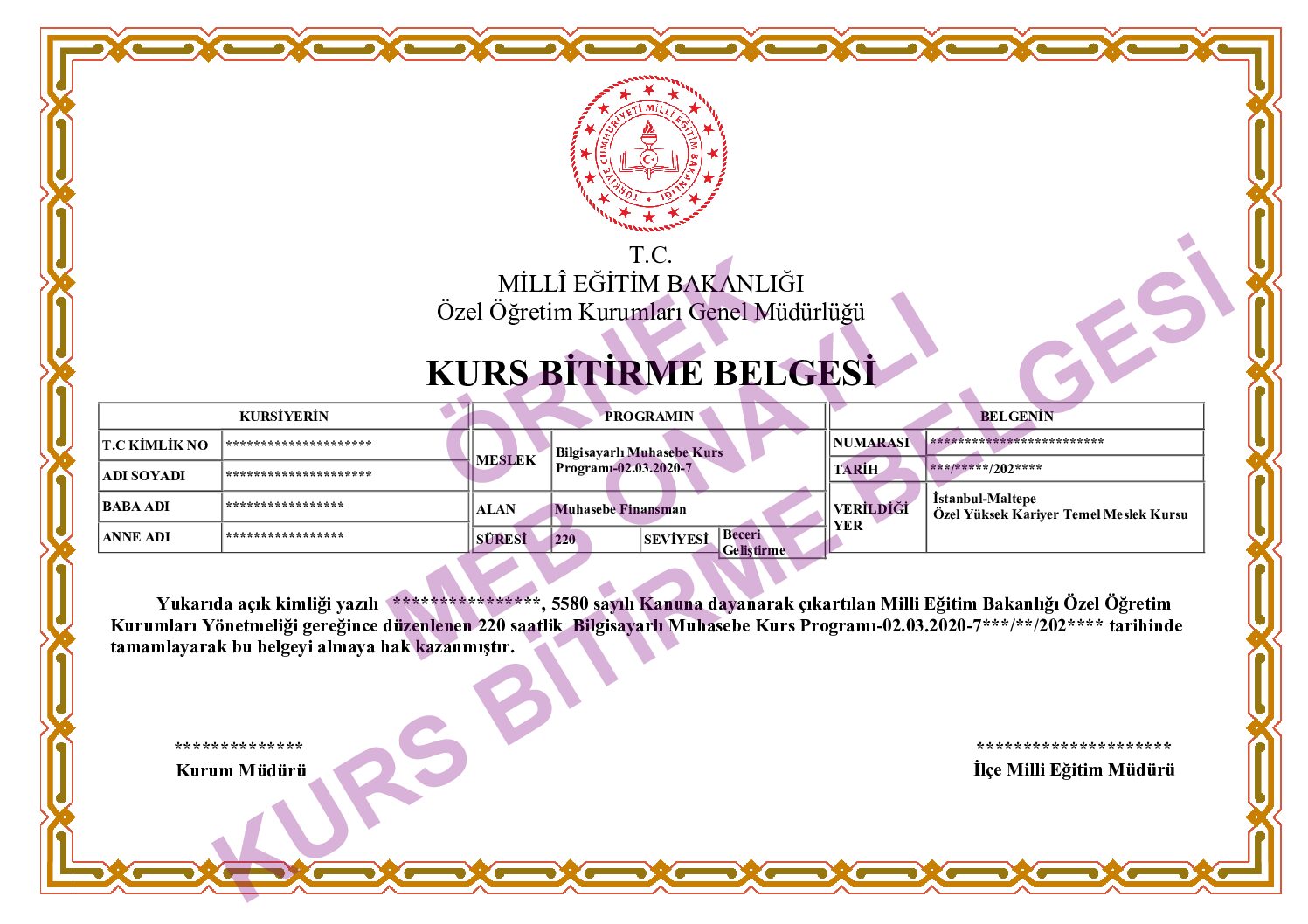 Yüksek Kariyer Eğitin Kurumlarına Kayıt yaptıran ve Milli Eğitim Bakanlığının düzenlenmiş olduğu sınavlara katılarak başarı sağlayan kursiyerler için düzenlenen sertifikalar e- Devlet üzerinden sorgulanabilmektedir. e -Devlet sorgulama linki : https://www.turkiye.gov.tr/milli-egitim-ozel-ogretim-kurumlarindan-alinan-kurs-bitirme-belgesi-sorgulama Kurumlarımızın ruhsatında bulunan onaylı kurs programları; Dış Ticaret Elemanı Yetiştirme …